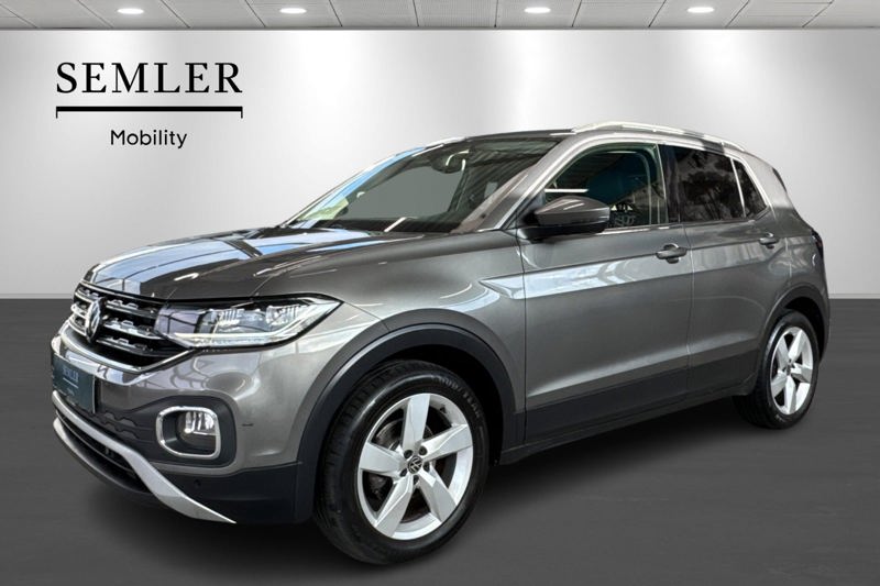 VW T-Cross Style med den kræftfulde 1,5 TSI motor med 150 HK i den flotte farven Limestone Grey Metallic,